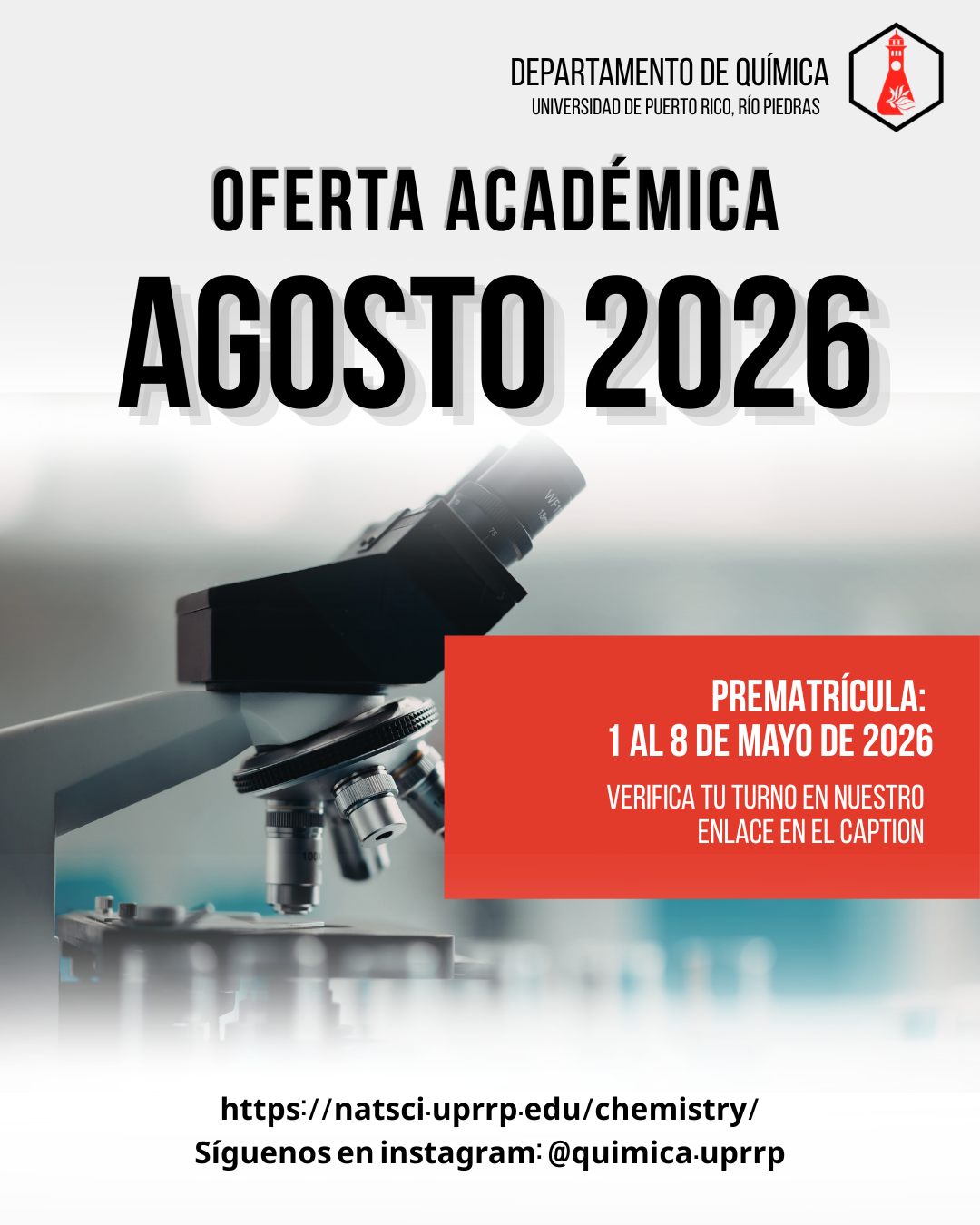 Conozca nuestra oferta de cursos para el semestre agosto-diciembre de 2026, y consulte los turnos de prematrícula en los enlaces a continuación: