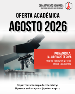 El Departamento de Química forma parte de la Facultad de Ciencias Naturales de la Universidad de Puerto Rico, Recinto de Río Piedras. Nuestro programa está certificado por la American Chemical Society (ACS) y acreditado por la Middle States Commission on Higher Education (MSCHE), lo que garantiza los más altos estándares de calidad académica.