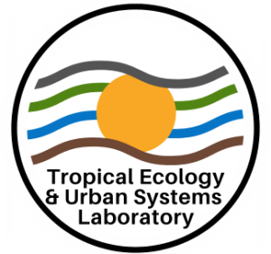 This is our logo, which broadly represents the diverse elements that we research in the laboratory. From top to bottom: the gray color = urban elements, green = vegetation, blue = water, brown = soils, yellow circle = tropical climate and the wavy lines = air.
