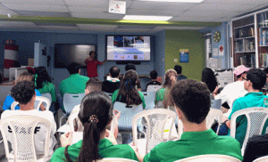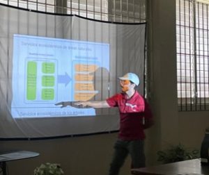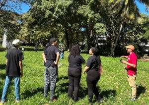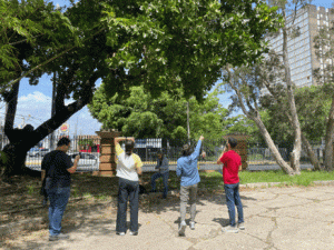 This is our logo, which broadly represents the diverse elements that we research in the laboratory. From top to bottom: the gray color = urban elements, green = vegetation, blue = water, brown = soils, yellow circle = tropical climate and the wavy lines = air.